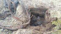 ただ・・。配管のみが埋まっていると思い掘り進めて行くと、「ガツン」と手ごたえが・・。